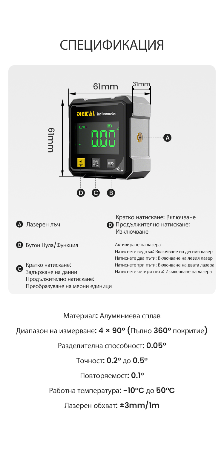 🚀 4-в-1 лазерен скенер | Измерва ъгли, наклони, отклонения и нивелации 📐